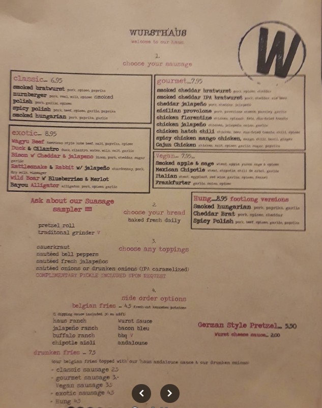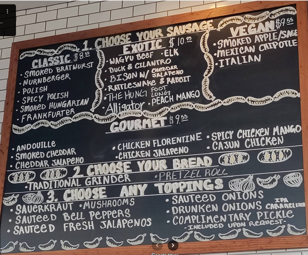 Phenomenal Food and Menu!!! So many different flavors of sausages and they were beyond! Generous selection of toppings and Fries that were to die for. Family-friendly with Street parking, reasonably priced, chill environment, reasonable wait time ( long enough to know that they're making the food fresh but quick enough for folks on the go) They hook it up with all the mustard flavors you can imagine and fresh made dipping sauces as well