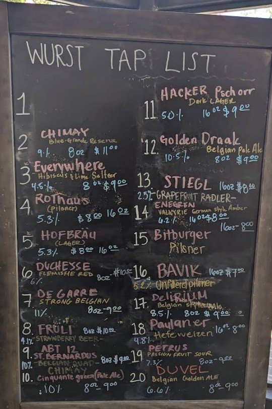1. The options for the sausage sampler are great, and each type tasted amazing! The fries and pretzels were also well-made! 2. The spot has fun casual vibes with an open interior in the back! 3. The staff was friendly and timely with my order! They brought the food to us in the back! Photo: Sausage Sampler, Belgian Fries, Pretzel, St Bernardus Kombine, and Chimay
